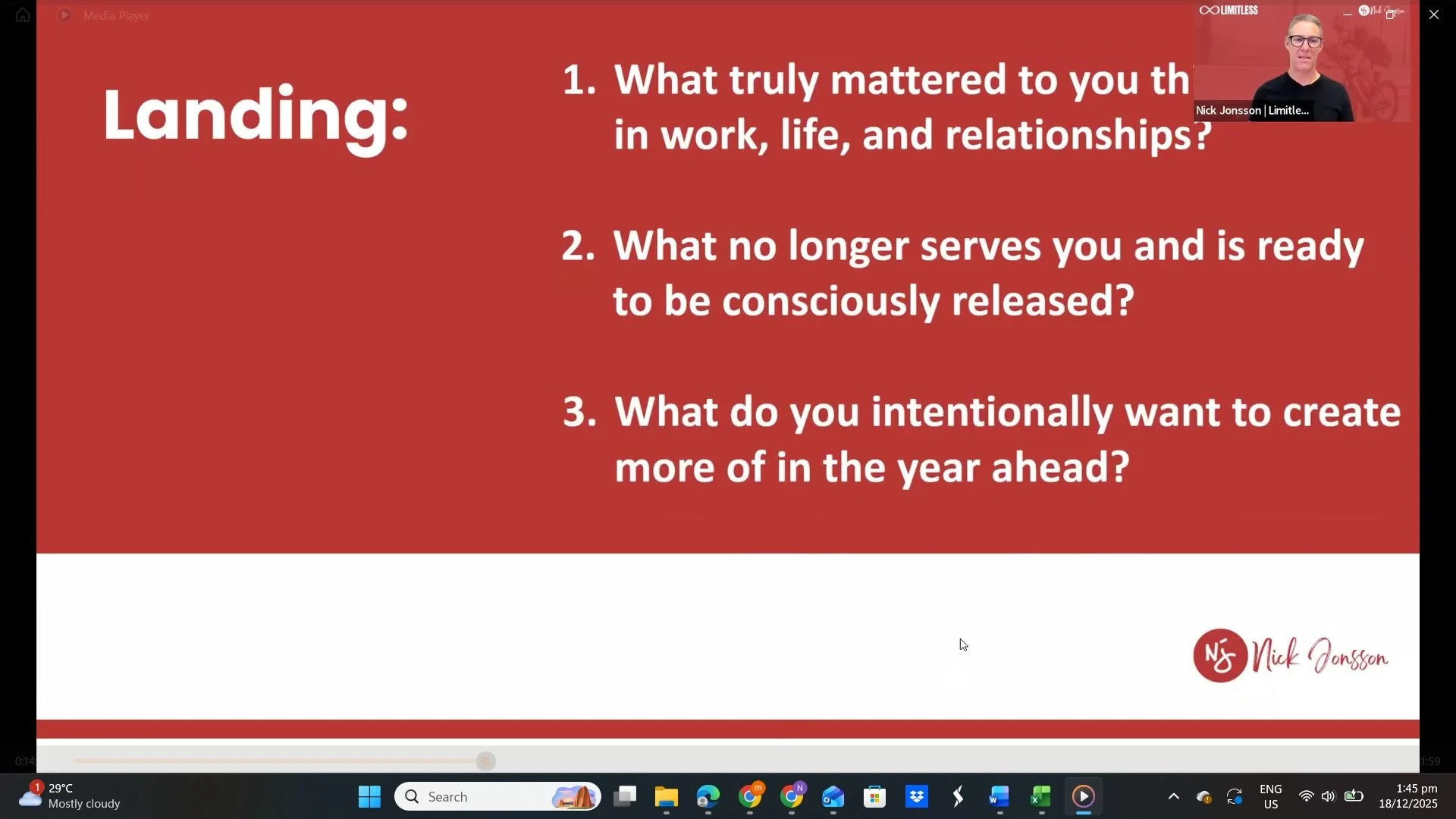 Recently delivered as a live LinkedIn event to a global audience of leaders and professionals, this keynote combines reflection, structure, and execution. It meets people where they are, challenges familiar thinking patterns, and replaces vague ambition with clarity, focus, and disciplined action.