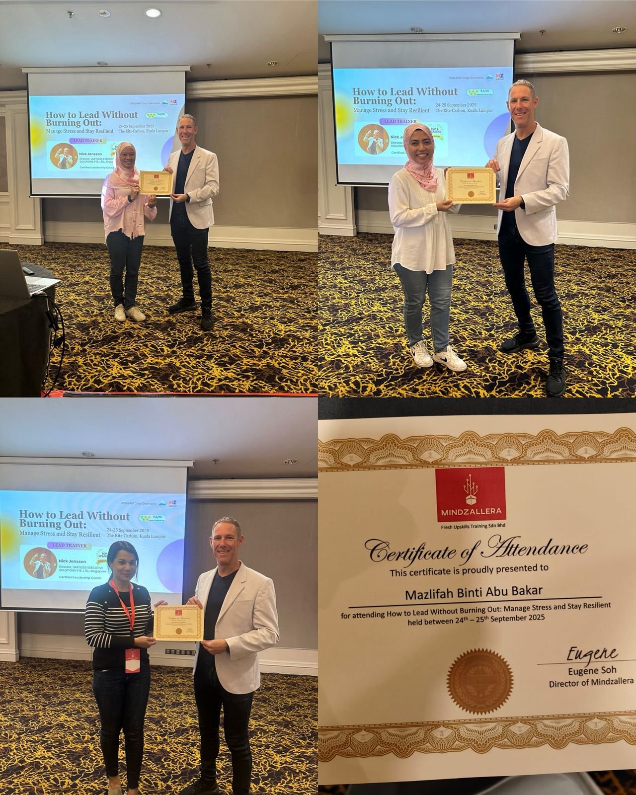 Nick Jonsson recently led an exclusive 2-day training at The Ritz-Carlton, Kuala Lumpur, for a group of senior leaders and professionals. The program focused on helping participants manage stress effectively, prevent burnout, and build long-lasting resilience.