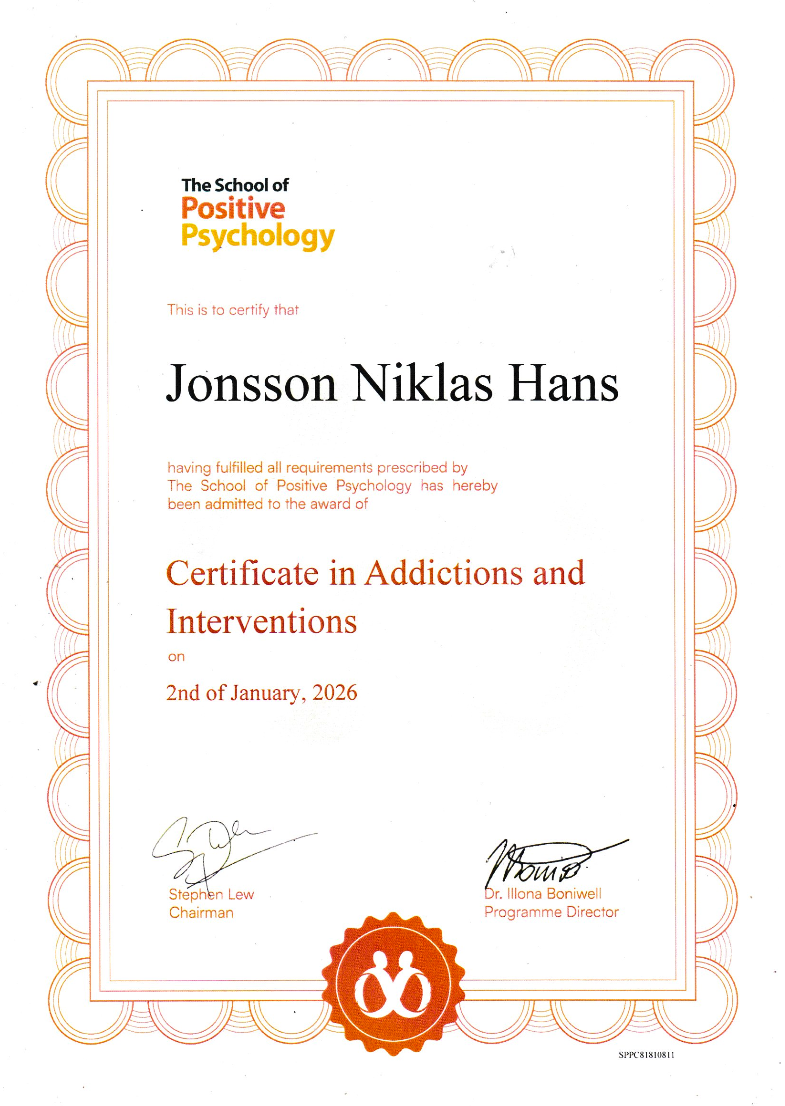 Certificate in Addiction and Interventions, The School of Positive Psychology, Singapore